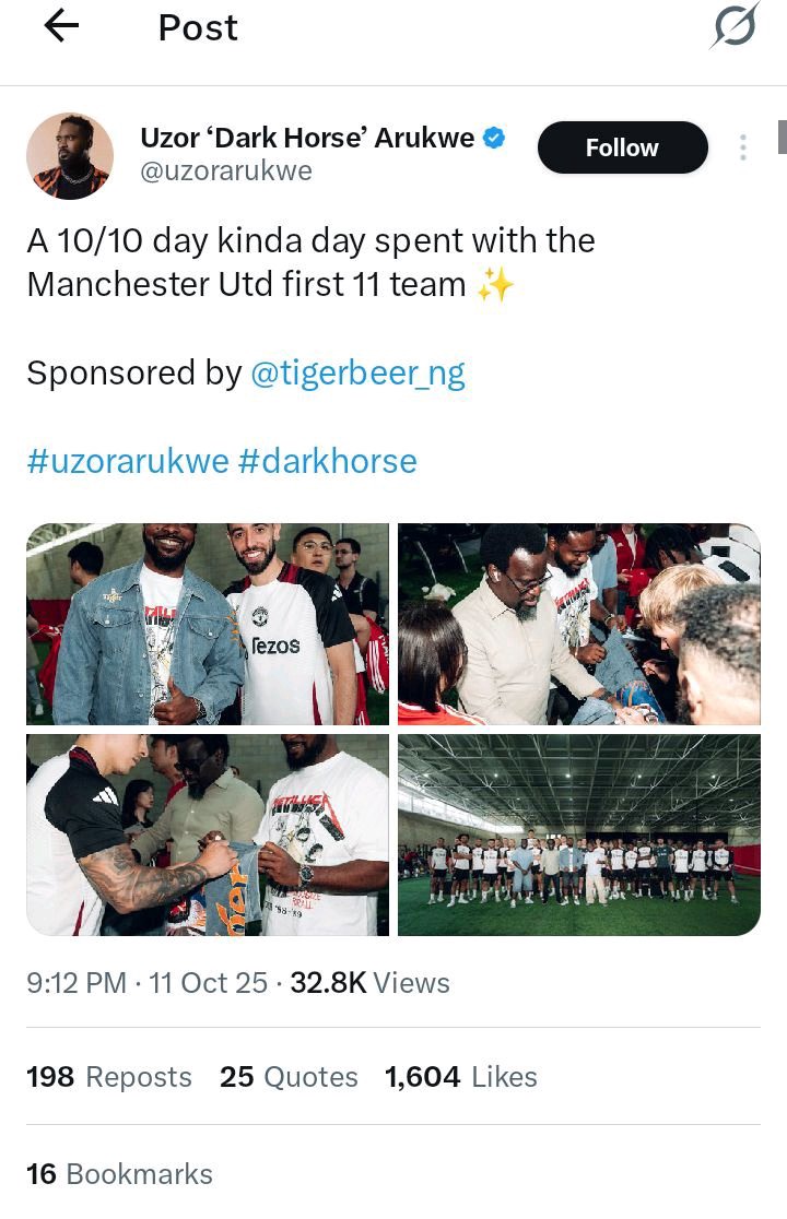 Nollywood Actor, Uzor Arukwe Shares Pictures Of Himself With Manchester United Players