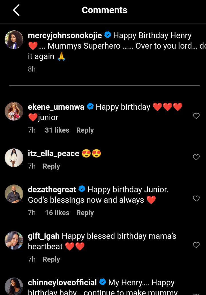 Fans and colleagues of the actress flooded her comment section with birthday wishes, celebrating the young boy and praising Mercy for the beautiful way she connects with her children.