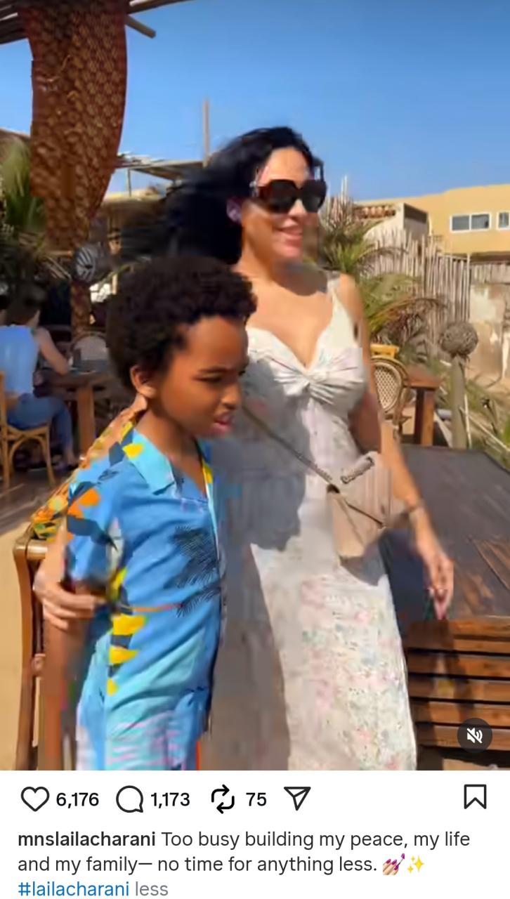 Laila Charani has shared a video showing her having a good time abroad with her son. Laila wrote in the caption, “Too busy building my peace, my life, and my family No time for anything less.”