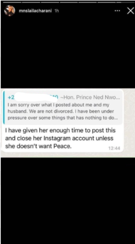 In Dec. 2021, Ned explained why their union ended. He accused Laila of infidelity. He also alleged that she neglected their kids, and was physically violent to their kids. He also said she did plastic surgery without his knowledge, was wayward, and would go clubbing with another man, leaving the kids on their own while they were abroad on a vacation he paid for (read the statement Ned posted here). Days later, Laila leaked a WhatsApp message she claims was from Ned insisting she must post an apology to him that he drafted and then leave social media (see here).