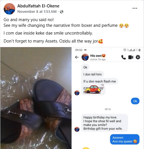 The post She changed the narrative from boxer and perfume – Nigerian man advises men to marry ‘assets’ as he shows off gift from his wife appeared first on Linda Ikeji Blog.