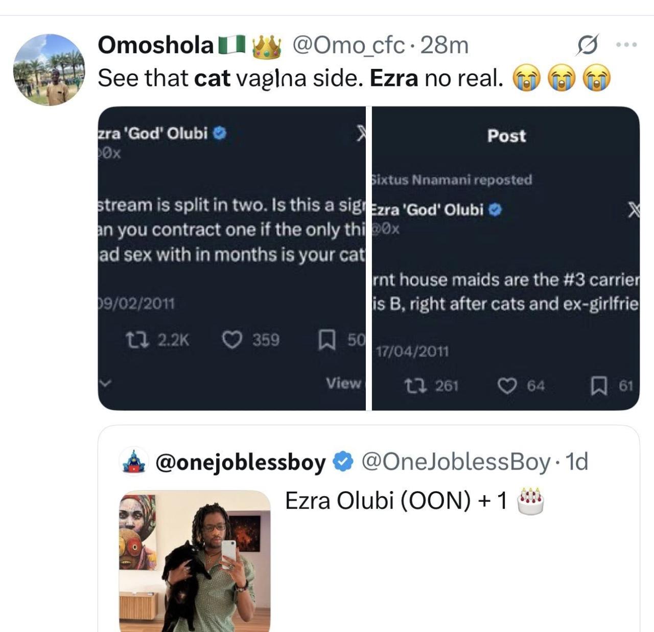 A photo of Paystack co founder Ezra Olubi holding his cat has resurfaced on social media as Nigerians continue to react to a series of troubling old posts circulating online. The renewed attention follows the emergence of several screenshots in which Olubi was seen making inappropriate and uncomfortable remarks involving min0rs and, in some cases, even implying s3xual relationship with his cat. The newly resurfaced image of Olubi carrying his black cat, shared by a popular commentator on X, quickly went viral as users linked it to earlier disturbing tweets attributed to him. The post Photo of Paystack co-founder Ezra Olubi and his cat pop up on social media after old tweet of having s3x with his cat appeared first on Linda Ikeji Blog.