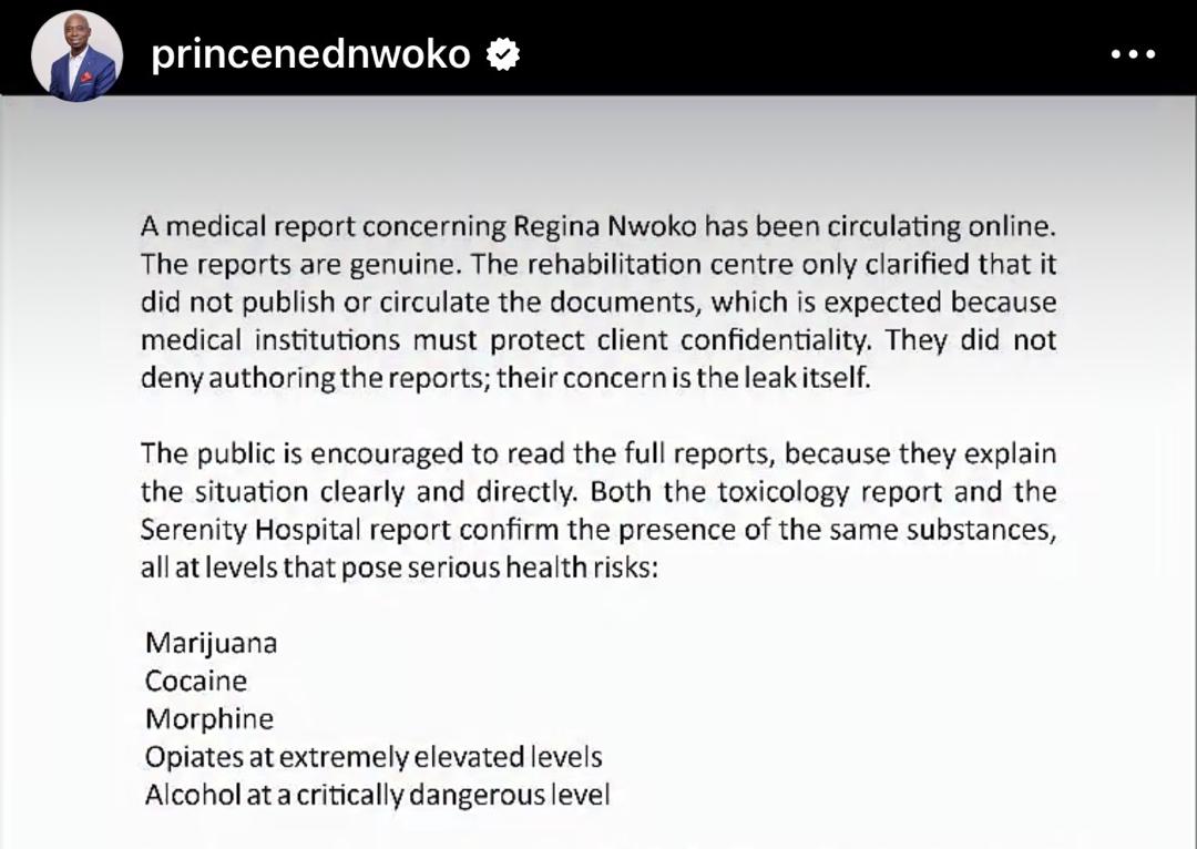 Viral Medical report about Regina Nwoko’s drug abuse is true – Ned Nwoko