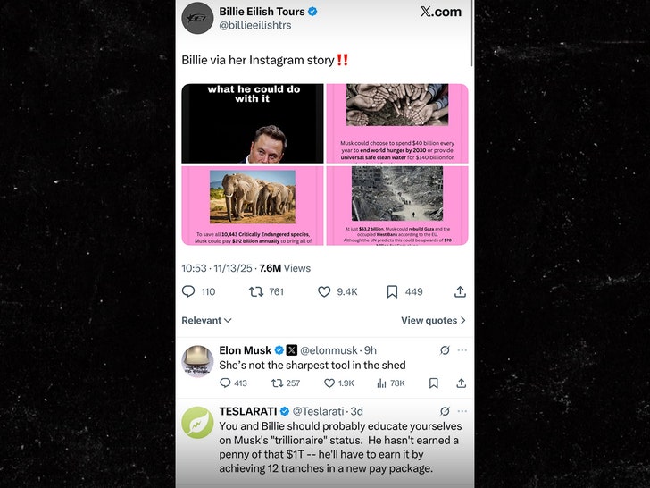 Eilish has increasingly used public platforms to condemn extreme wealth accumulation. At the WSJ Innovator Awards last month, an event attended by some of the worlds richest figures, including Mark Zuckerberg, she questioned why billionaires exist at all, noting that no one should hold that much money. The 22-year-old recently pledged more than $11 million from her ongoing tour to climate-related and humanitarian causes.The post Billionaire Elon Musk slams singer Billie Eilish after she called him out for hoarding wealth appeared first on Linda Ikeji Blog.
