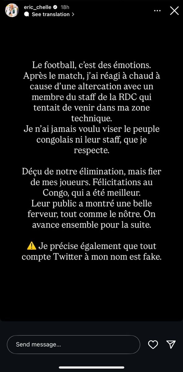 Super Eagles coach, Eric Chelle, has spoken out after he almost got into a fight with a member of DR Congo staff following Nigerias penalty shootout defeat in the African World Cup playoff final DR Congo came back from a goal down to beat Nigeria 4-3 on penalties in a tightly-contested African play-offs final on Sunday, November 16, at the Moulay Hassan Stadium in Rabat, Morocco, picking Africas sole ticket for the intercontinental play-offs billed for March next year. Before a final penalty, Chelle was seen attempting to start a fight with a member of the DR Congo staff. He had to be held back by some of his coaching crew. During his post-match interview, ric Chelle stated that the reason for his anger was that the Democratic Republic of the Congo team was performing rituals on the sidelines during the penalty shootout to disrupt the game. Reacting to his outburst on Instagram, Chelle said his heated reaction after the match was due to an altercation with a DRC staff member entering his technical area. He stressed that he never intended to disrespect the Congolese people or their staff. Football is all about emotions, Chelle posted in an Instagram Story.After the match, I reacted hotly to an altercation with a member of the DRC staff trying to come into my technical area. I have never wanted to target the Congolese people or their staff, which I respect. Disappointed in our elimination but proud of my players. Congratulation Congo, which was the best. Their audience showed great fervour, just like ours. Moving forward together for whats next.