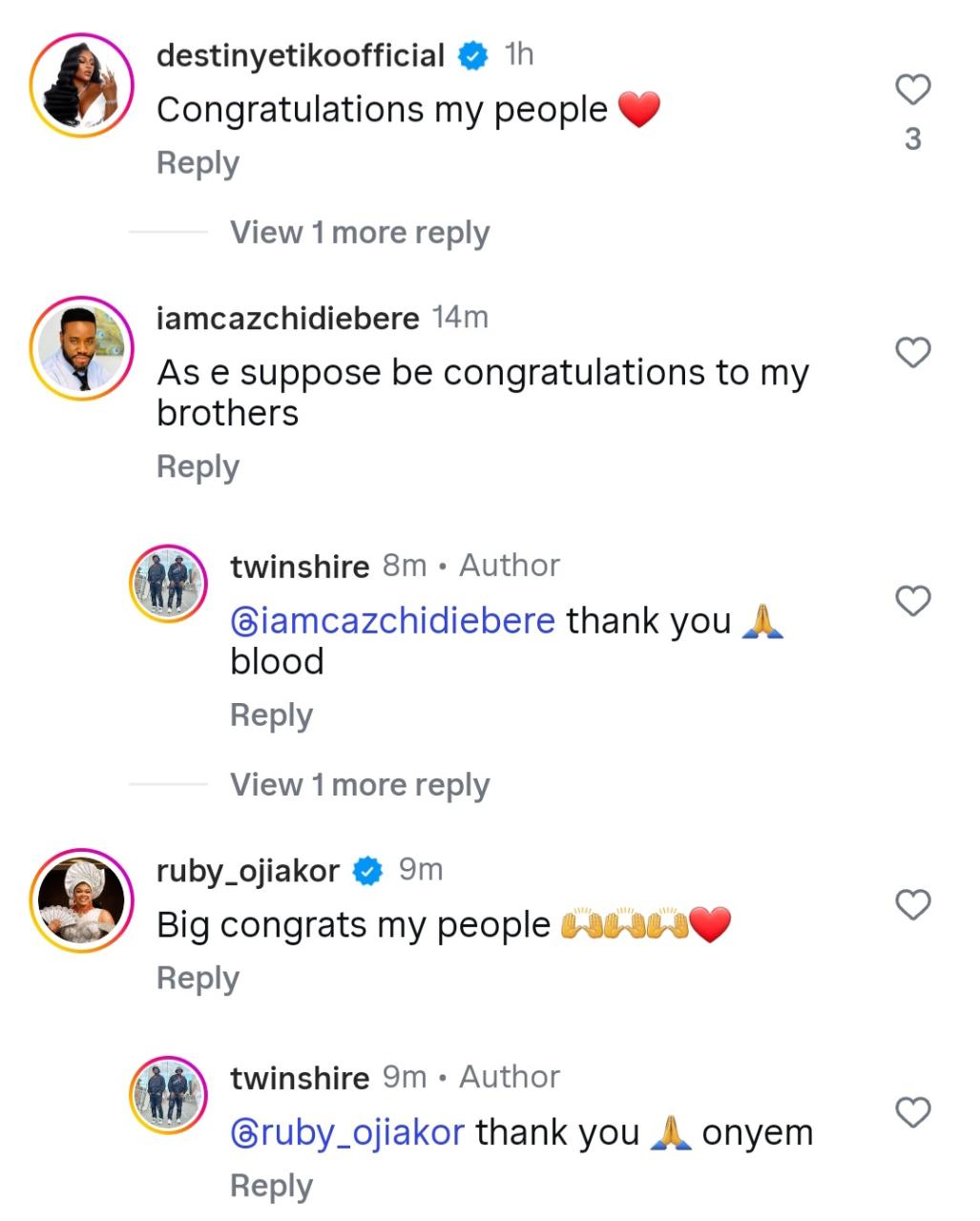 Identical twin actors gave married to identical twin sisters who were pregnant at the same time.  The Shire Twins, both Nollywood actors, shared photos and videos from their pre-wedding photoshoot.  The photos show them wearing identical outfits while posing with their identical twin brides in matching outfits. The twin sisters were pregnant and seemed to be similarly far along in their pregnancy journey.  The actors announced in the caption that their wives have given birth to girls.  Nollywood actors have left congratulatory messages for them, wishing them well on their wedding and on their birth of their daughters. See below.  The post Nollywood identical twin brothers wed pregnant identical twin sisters appeared first on Linda Ikeji Blog.
