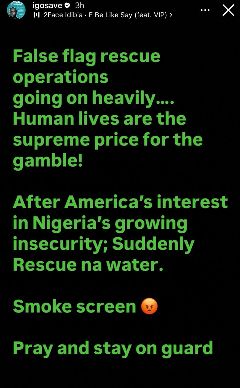 Comedian, I Go Save, has commented on the recent rescue of abducted Nigerians, Over the weekend, President Tinubu announced that the 38 Churchgoers abducted by bandits during an attack in Kwara state have been safely rescued. The President also mentioned that 51 of the pupils abducted from a catholic school in Niger state have been rescued. Hours after the announcement was made, I Go Save, raised eyebrows over the rescue operations, tagging them as false flag rescue operations”. He opined that after the US announced plans to invade Nigeria to stop Christian genocide, rescue operations” have become easy feats. Read what he wrote below