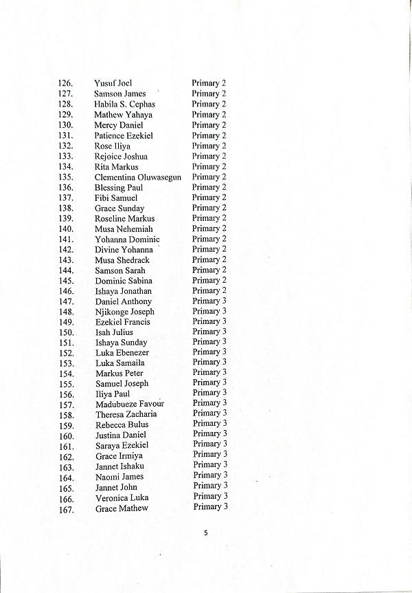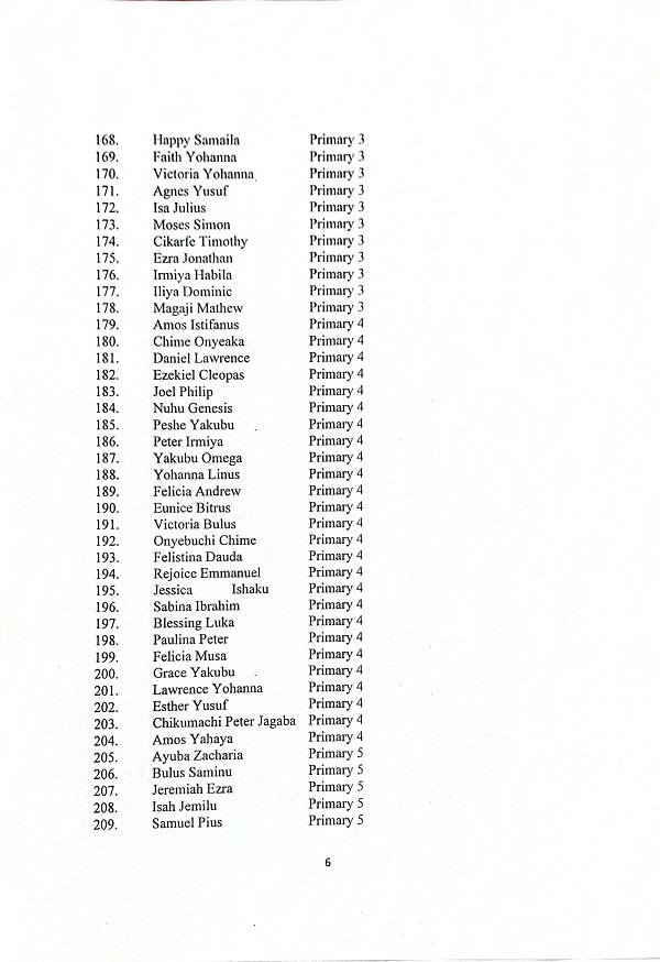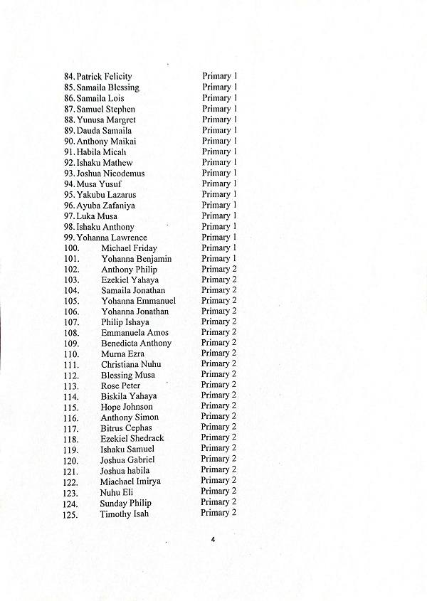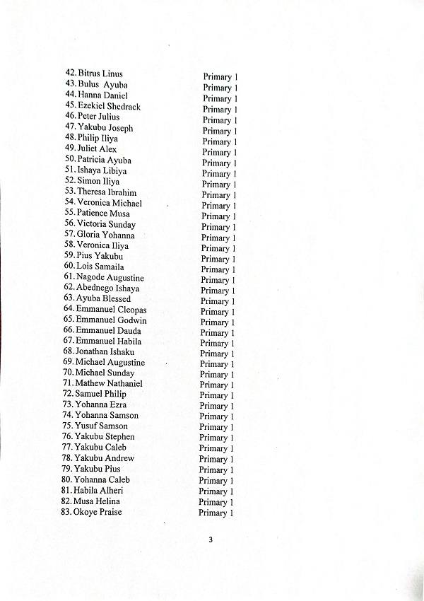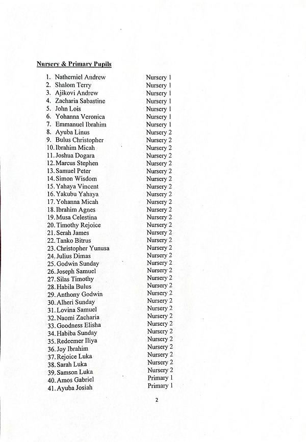 Update: Names of 265 Niger State Catholic school pupils, students and staff still in captivity