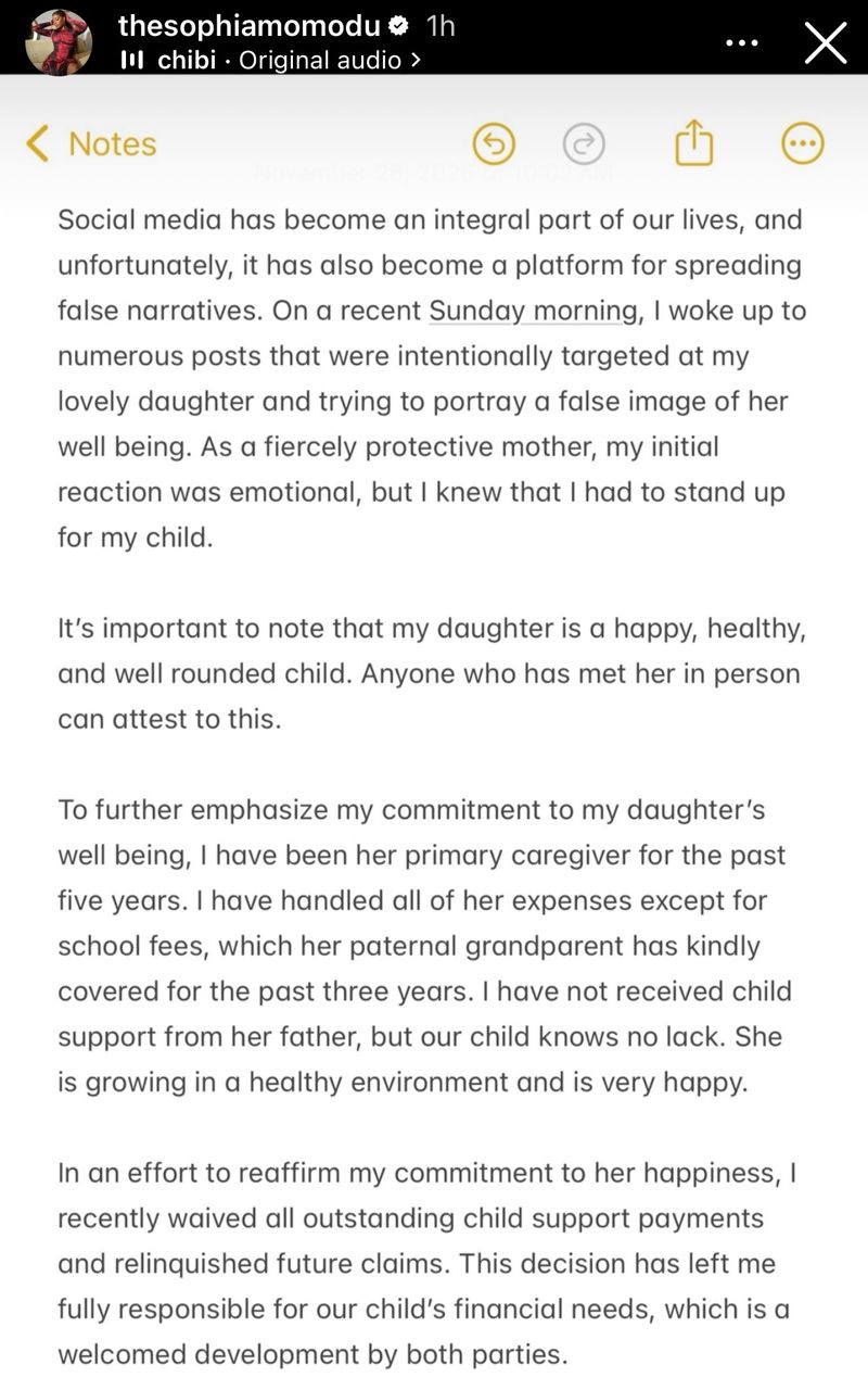 The post I have not received child support from her father but our child knows no lack”- Sophia Momodu releases statement following accusations of not allowing her child, Imade, celebrate with her dad, Davido and his family appeared first on Linda Ikeji Blog.