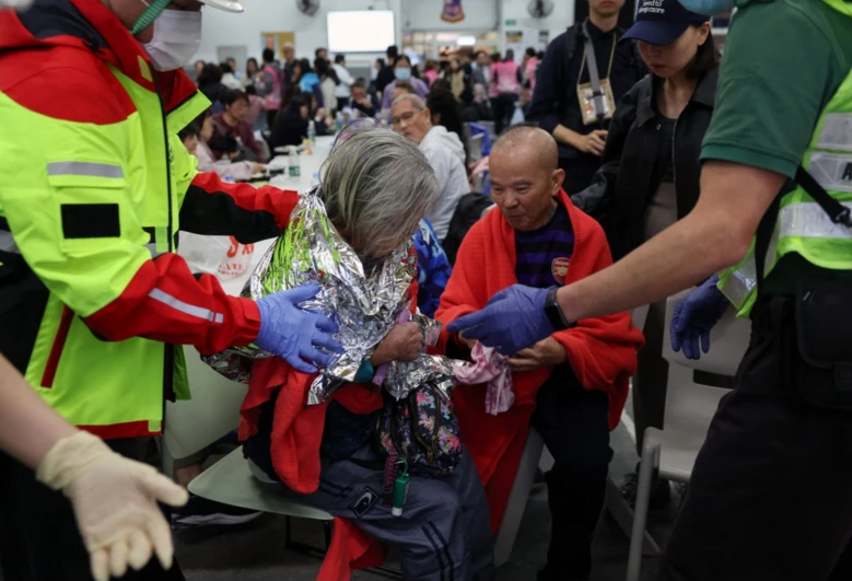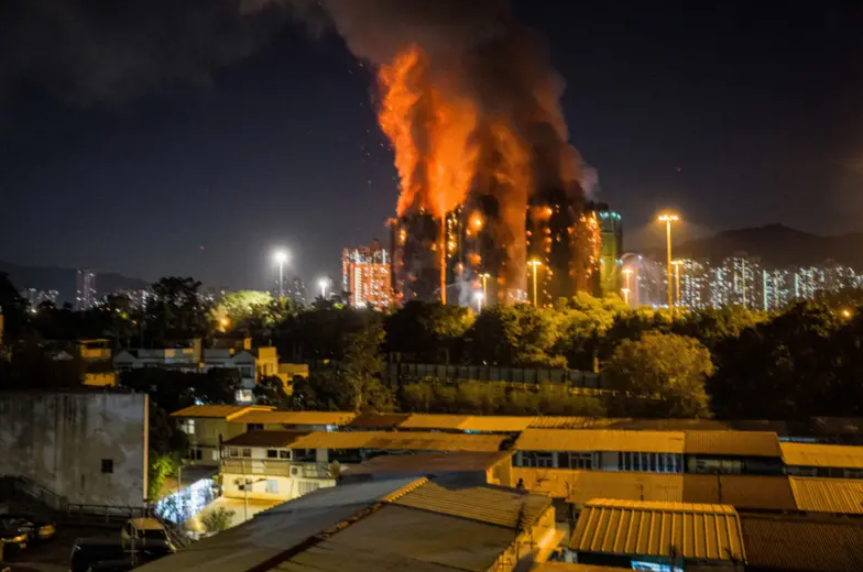 The fire, which began in the afternoon, quickly climbed up bamboo scaffolding and construction netting surrounding the buildings. By night, flames and thick smoke were seen pouring from multiple apartment windows, prompting officials to raise the alarm to level 5, the highest severity. Video footage showed at least five buildings burning simultaneously, with bright flames lighting up the night sky. Local council member Lo Hiu-fung said many of the people trapped inside were elderly residents.