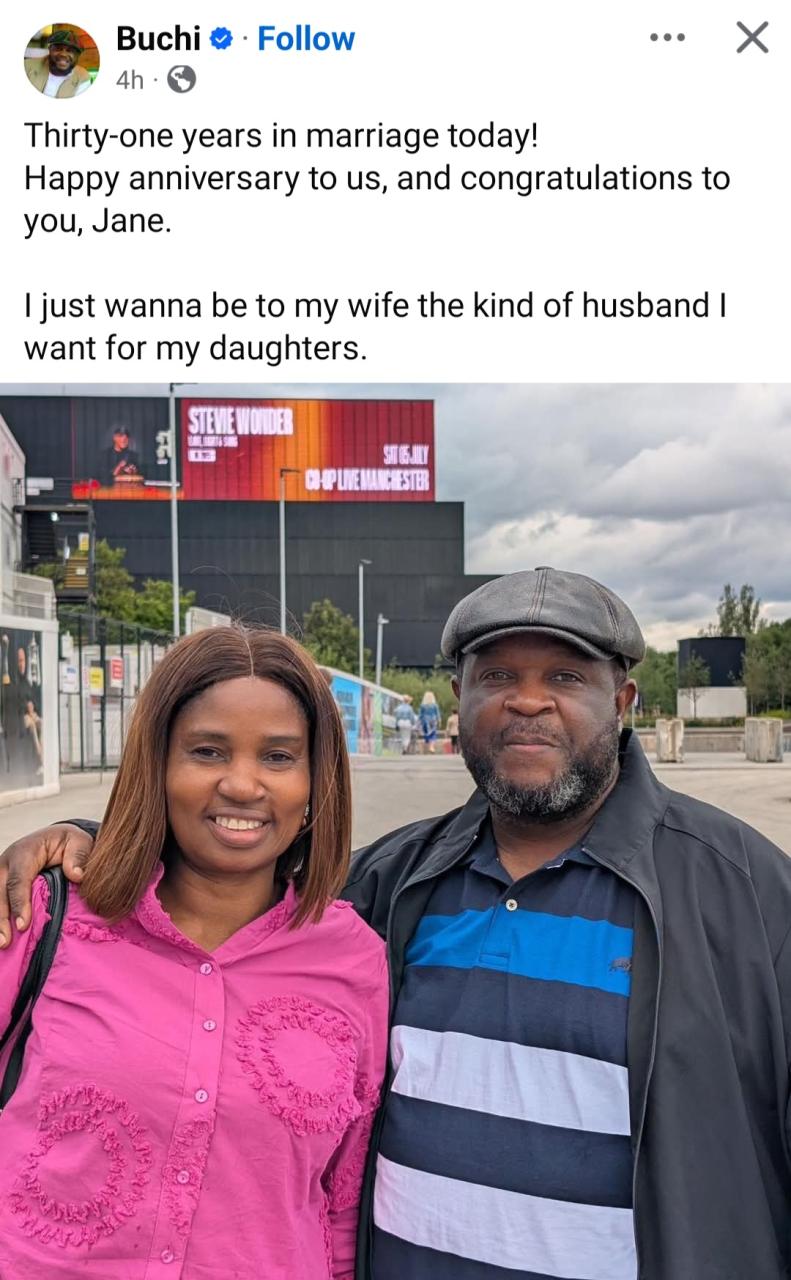 The post “I just wanna be to my wife the kind of husband I want for my daughters” Gospel singer Buchi writes as he celebrates 31 wedding anniversary appeared first on Linda Ikeji Blog.