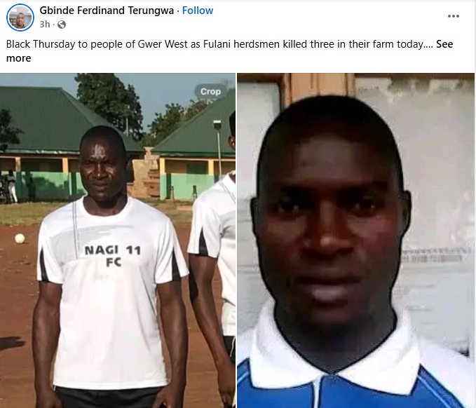 Armed attackers suspected to be herdsmen struck farmlands in Naka, Gwer West Local Government Area of Benue State, k!lling three farmers. The incident occurred behind Government Comprehensive Secondary School, Naka on Thursday, November 27, 2025. The victims Mr. Ioryer Kwaghkaha OLS, Ayila Atsar, and another yet-to-be-identified individual were reportedly shot and later brutally attacked on their farms in Gilim Ashi village, a settlement along the NakaAgagbe road. Their bodies have been evacuated and deposited at the Naka morgue. The latest incident comes barely 24 hours after a traveler was ambushed and k!lled on the NakaMakurdi road near Kula village.