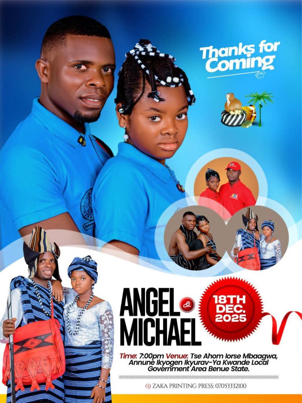 The pre-wedding photos of a Benue couple have sparked debate online over their obvious age gap, with many people claiming the bride-to-be is underaged while others suggested she’s baby-faced. The couple, Michael and Angel, are set to wed on December 13, 2025 in Kwande Local Government Area of the state. Benue activist, Zeke Orkwande, who is from the community, shared the photos in a Facebook post on Monday, asking for confirmation of the girl’s age. “Good morning my people, I hope this isn’t a case of underaged marriage about to happen in Ikyurav-ya, Kwande Local Government Area? Somebody help check,” he wrote. “Recently, in Enugu state, police arrested a 30yrs old man for marrying a 13yrs old girl. Both parents were arrested too. Well, let’s not conclude yet, some people are born with ever young blood and baby faces. Maybe Angel isn’t underage as we see in photos. Let’s not judge the book by its cover yet. CONGRATULATIONS TO THEM.
