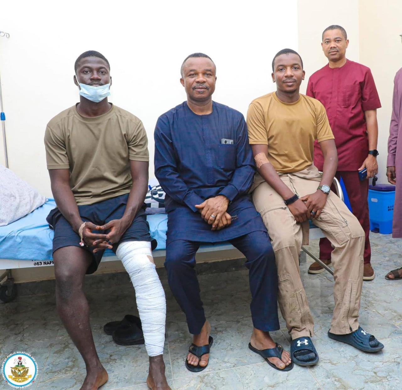 The Chief of the Air Staff (CAS), Air Marshal Sunday Aneke, has praised the courage and professionalism of two NAF Alpha Jet pilots who safely ejected after their aircraft suffered an in-flight emergency and crashed near Karabonde in Borgu Local Government Area of Niger State. Aneke commended the pilots when he visited them at the hospital on Saturday night, December 6, 2025 in Abuja. He praised the aircrew for their sound judgement and exemplary discipline, noting that their swift actions averted potential casualties on the ground. The CAS also ordered a Board of Inquiry to investigate the cause of the emergency.. He commended the coordinated response of fire and crash units, medical teams and other base personnel who secured the site and supported the recovery efforts. The Nigerian Air Force (NAF), said the incident occurred shortly after take-off during a post-inspection functional check flight at NAF Base Kainji. According to the NAF, the pilots kept their composure, maneuvered the aircraft away from populated areas and executed a safe ejection. The service said both pilots were immediately recovered by Search and Rescue teams and are undergoing routine medical evaluation. The post Air chief visits jet pilots who survived Niger State crash (photos) appeared first on Linda Ikeji Blog.
