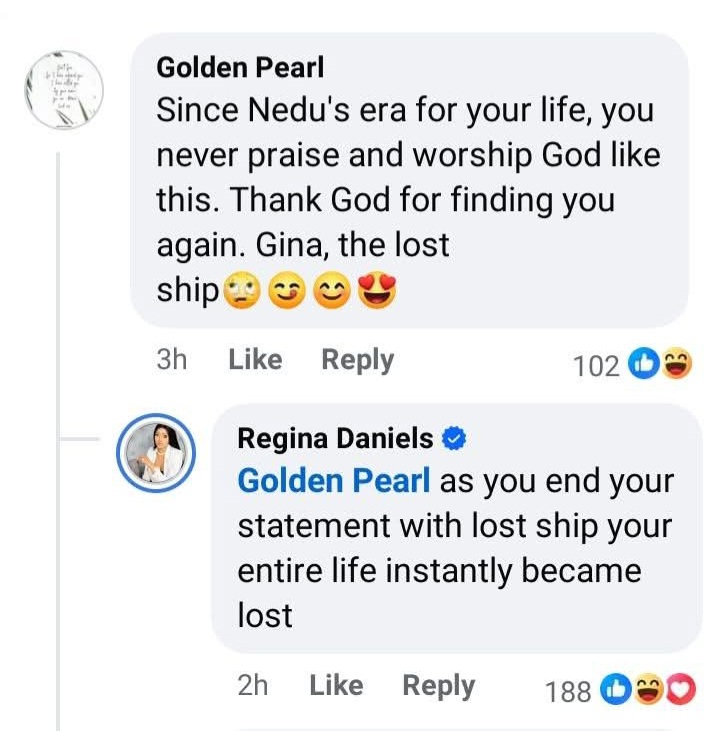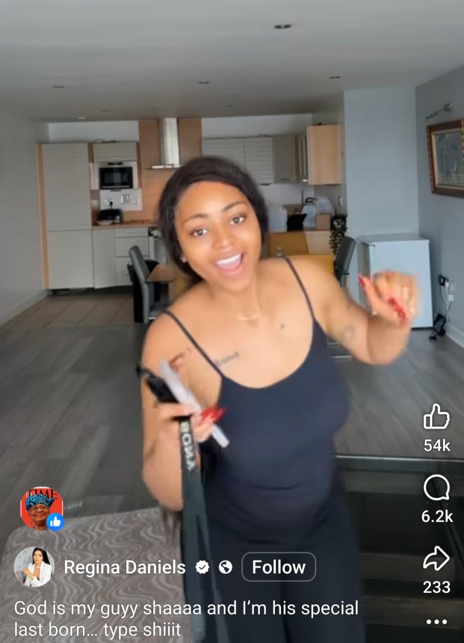 Regina Daniels has responded to questions and criticisms about her failed marriage to older politician Ned Nwoko. The actress is currently in London following a traumatizing month where she cried out online multiple times, accusing her estranged husband of domestic violence, intimidation, and arresting her brother just to make her come back to him. While in London, she shared a video of herself dancing to Tim Godfrey’s Big God. Nigerians reacted, some with criticism and others with questions. Some pointed out that she has now remembered that she is a Christian following her marriage to a Muslim man. Regina responded, telling them that God is her guy. Another asked if she will consider getting married again and Regina said the institution of married left her “traumatized”.