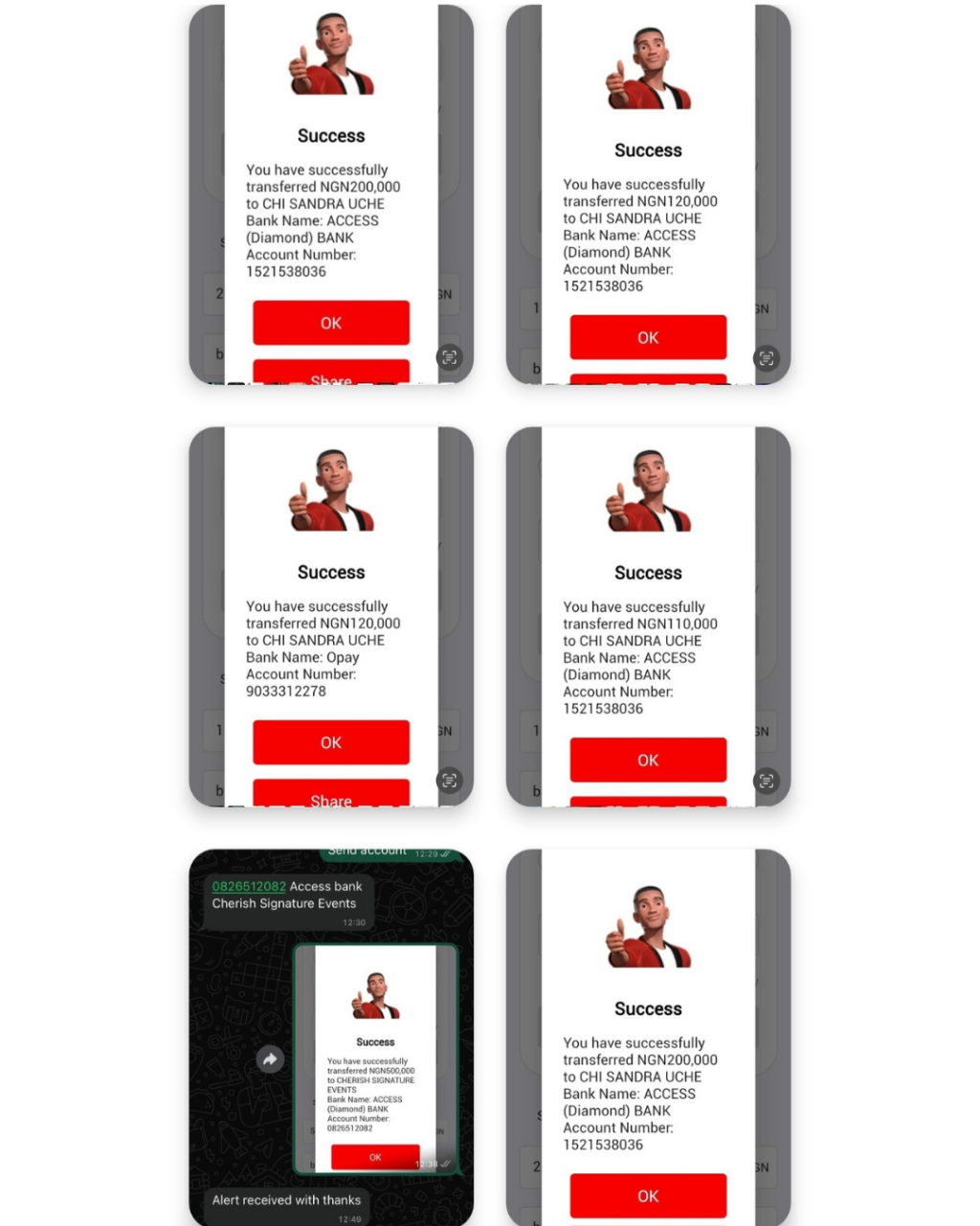 He also denied Sandra’s claims that he kept borrowing money from her. He sent LIB receipts of some credit alerts he made to Sandra’s account and others made to the accounts of vendors they employed for their wedding.
