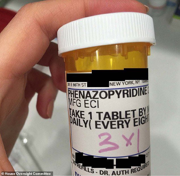 ‘I will send u girls now,’ one of the messages reads, followed by another which says: ‘Maybe someone will be good for J?’ Other images show Russian, Lithuanian, and Czech passports and a South African identity card, all of which appear to belong to women and also have the identifying details redacted. It is possible that the travel documents belonged to Epstein’s trafficking victims. His partner, Ghislaine Maxwell, would confiscate passports from the girls they trafficked while they were on Epstein’s private island, victims testified during her trial. Another one of the images shows medicine to treat a urinary tract infection, with the details of the person who was prescribed the drug redacted.