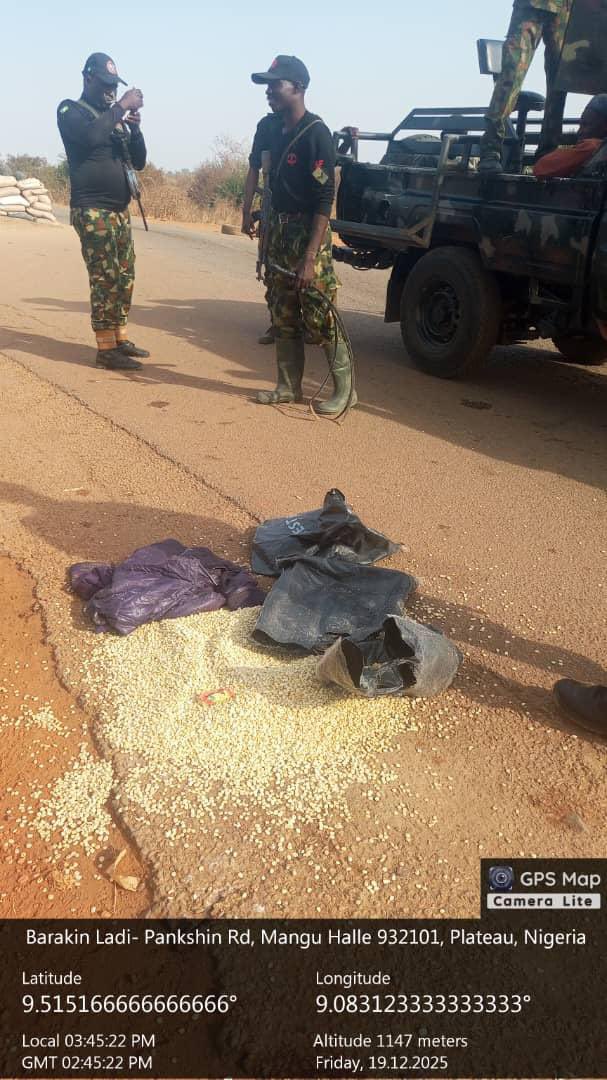 Troops of 3 Division of the Nigerian Army under Operation Joint Task Force, Operation Enduring Peace (OP Enduring Peace), have arrested a suspected gunrunner and recovered arms and ammunition in Bokkos and Mangu Local Government Areas of Plateau State. The operations, conducted on Thursday, December 18, 2025 were part of ongoing efforts to mop up illicit arms and ensure a peaceful yuletide season within the Joint Operations Area. In the early hours of the day, troops, in conjunction with operatives of the Department of State Services (DSS), raided a suspected criminal hideout at Gwender Village in Bokkos Local Government Area, following intelligence reports. Although the suspects reportedly fled before the arrival of the troops, a search of the hideout led to the recovery of one fabricated AK-47 rifle with a magazine, one fabricated pistol and several rounds of ammunition of different calibres. In a related operation, troops working with a DSS Tactical Team mounted a snap checkpoint at Mairana in Mangu Local Government Area, based on credible intelligence. During the operation, a Fulani youth was intercepted and arrested while in possession of two boxes of ammunition containing 1,400 rounds of 7.62mm special ammunition. The suspect and the recovered items are currently in custody for further investigation, while troops have intensified follow-up operations to apprehend other members of the suspected criminal syndicate. The military reiterated its commitment to sustaining pressure on criminal elements to ensure peace and security across Plateau State and the wider Joint Operations Area.