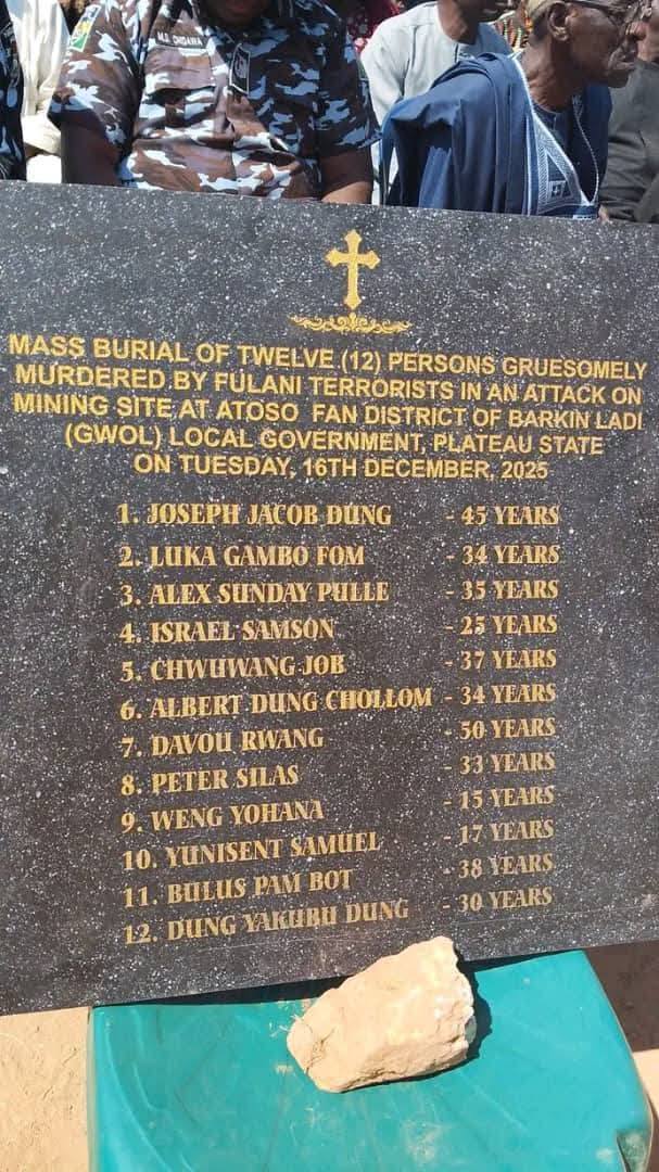A total of twelve miners k!lled by herdsmen were buried in Atosoh community in Fan District, Barkin Ladi Local Government Area of Plateau State.   LIB reported that terrorists had invaded the community on Tuesday, December 17, 2025 and opened fire on miners, k!lling at least 12 persons instantly.  It was gathered that many other persons were missing following the brutal attack.  The mass burial held on Saturday, December 20, was marked by tears and prayers.     The post 12 miners who were k!lled by suspected herdsmen buried in Plateau appeared first on Linda Ikeji Blog.