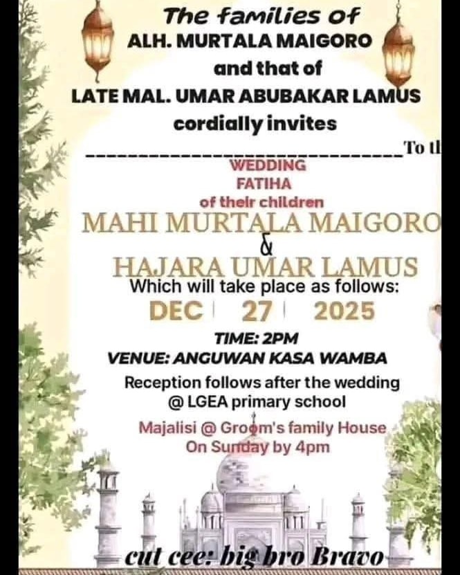 A Nigerian woman, Hajara Umar Lamus, has d!ed in a motor accident seven days to her wedding in Nasarawa State. It was gathered that the deceased was travelling from Lafia to Wamba in Nasarawa when the accident occurred on December 20, 2025. According to the wedding invite, Hajara was set to marry her man, Mahi Murtala Maigoro on December 27. The sudden loss has thrown her family, friends, and loved ones into deep mourning. Many have described her death as a painful reminder of the unpredictability of life. “Innalillahi Wa’inna Ilaihi Rajioon, I swear this life is scary, it has no certainty. May Allah make us die in faith. May Allah Almighty forgive and have mercy on your soul and may your soul repose in Jannatul’firdous, Hajara Umar Lamus!,” one Muhammad Sani wrote. Until her untimely death, Hajara was a student of the College of Health Science and Technology Wamba (COHSTEW).