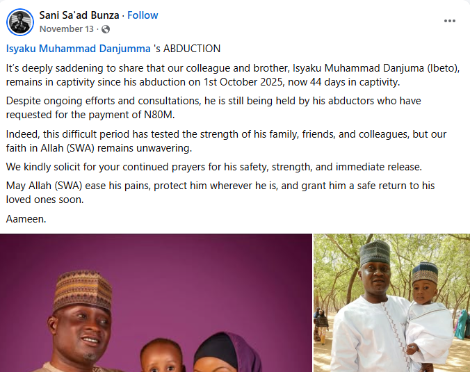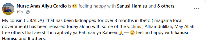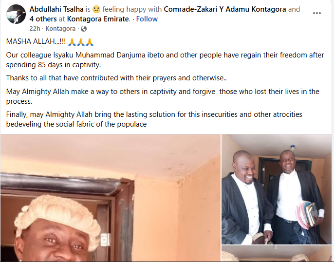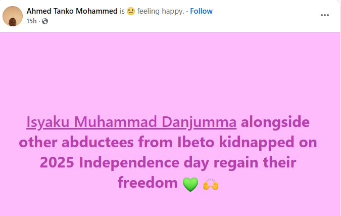 Relief mixed with grief swept through the Ibeto community in Magama Local Government Area of Niger State as 17 residents, abducted by armed bandits nearly three months ago, finally regained their freedom. The victims were kidnapped on October 1, 2025, when bandits reportedly stormed the community. Four people were k!lled while nine others sustained injuries. Among those abducted is a lawyer, Isyaku Muhammad Danjuma. Hours before his abduction, he had posted on Facebook warning locals about the movement of bandits from Uccu towards Ibeto with a herd of stolen cattle. It was allege that his location may have been leaked to the attackers by informants. The bandits reportedly demanded N200m ransom initially, but later reduced it to N80m after negotiations. Family, friends, colleagues and community members confirmed the development on Facebook. According to a colleague, the victims were released on Thursday, December 25. One of the abducted victims d!ed in captivity.