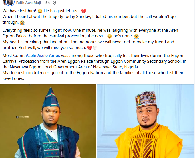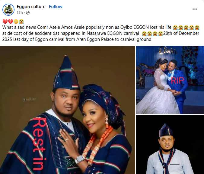 Four persons have been confirmed d3ad, while seven others sustained varying degrees of injuries when three trucks rammed into a crowd during a procession at the annual Eggon Festival and Carnival, in Nasarawa Eggon Local Government Area of Nasarawa State. The incident occurred during the festival held at the Eggon Community Secondary School on Sunday, December 28, throwing the usually colourful celebration into mourning. Confirming the accident, the Corps Commander of the Federal Road Safety Corps (FRSC), Yahaya Sabo, said the crash was caused by reckless driving, adding that investigations were ongoing. Eyewitnesses described the incident as tragic and avoidable, blaming the truck drivers for failing to exercise caution in the crowded festival environment. The bodies of the deceased have been deposited at the Federal University of Lafia Teaching Hospital, while those injured are currently receiving medical treatment at the General Hospital in Nasarawa Eggon.  Two of the victims were identified as Asheazi Musa and Comrade Asele Amos Asele, popularly known as Oyibo Eggon.    The post Four k!lled, seven injured as trucks ram into crowd during Nasarawa-Eggon carnival appeared first on Linda Ikeji Blog.