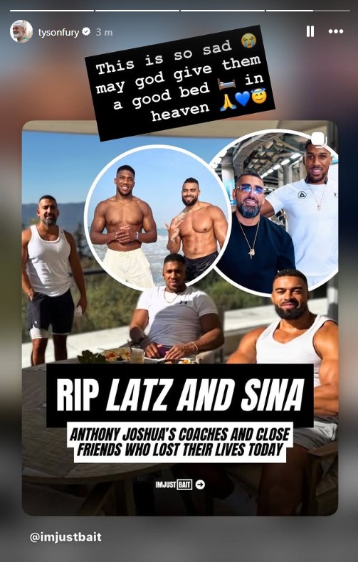 Tyson Fury has paid tribute to Anthony Joshua and the two victims who lost their lives in a fatal road accident in Nigeria involving the former heavyweight champion. Fury, a former world heavyweight title holder and a potential opponent for Joshua later this year, shared a message on his Instagram story expressing condolences following the crash. The accident claimed the lives of Latif Ayodele and Sina Ghami, both close associates of Joshua. Referring to the deceased, Fury wrote: This is so sad. May God give them a good bed in heaven.