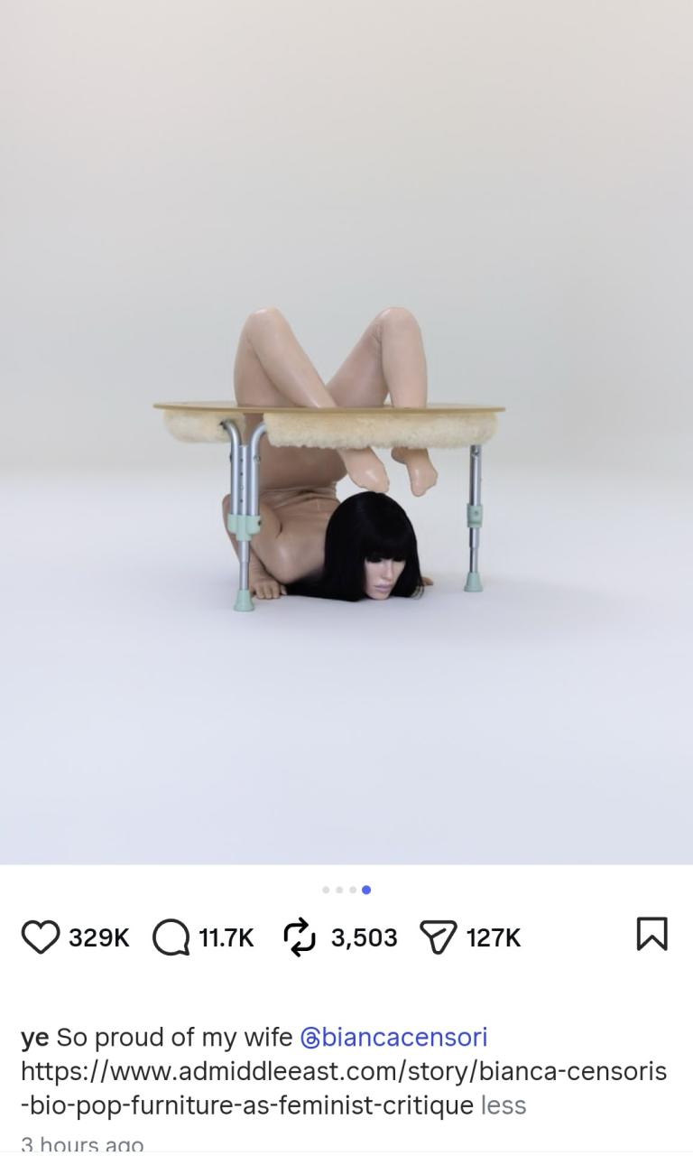 According to AD Middle East, Censori, 30, “presented a series of tables, chairs and sculptural objects in which the female body contorts itself” at an exhibition titled BIO POP in Seoul, South Korea, on December 11. The outlet described the Australian architectural designer as staging “domestic rituals as performance, turning furniture into a language of obedience, control and simulated identity.” The artist explained on her website: “The home molds the body, the spirit, and its roles.” Censori herself performed for 11 minutes, donning a red latex catsuit as she mimed baking a cake and wheeled it to a table where female figures creepily acted as tables and chairs. The art has been receiving backlash, with some critics calling the show a “coded cry for help,” as there have been continuous rumors about West controlling Censori, from her diet to her fashion choices. According to RadarOnline.com, a source close to the exhibition said, “The contorted figures and their integration into domestic furniture suggest something darker.” “It’s as if Bianca is projecting a coded message about her own experiences about being constrained, observed, or controlled,” they noted. The post Kanye West says he is ‘so proud of wife Bianca Censori’ after she contorts body into furniture in ‘scary’ Seoul art show (photos) appeared first on Linda Ikeji Blog.