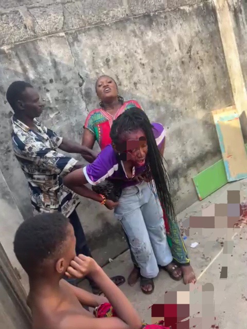 A girl has been hospitalised and her stepfather detained after he hit her on the head with a plank that had nail on it. According to a neighbour who reported the incident to LIB, the stepfather is in the habit of maltreating the girl and the girl’s mother covers up for him. The neighbour shared with us a gory video showing the girl, Chilotam, bleding from the head where she had been hit. He blood ran down her face, covering most of it, and also dotted the floor.