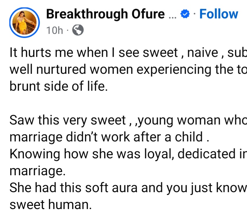 The post “Please stop getting married. I hate to see good women get hurt” Woman writes as she shares story of a “sweet, naive, submissive” woman appeared first on Linda Ikeji Blog.