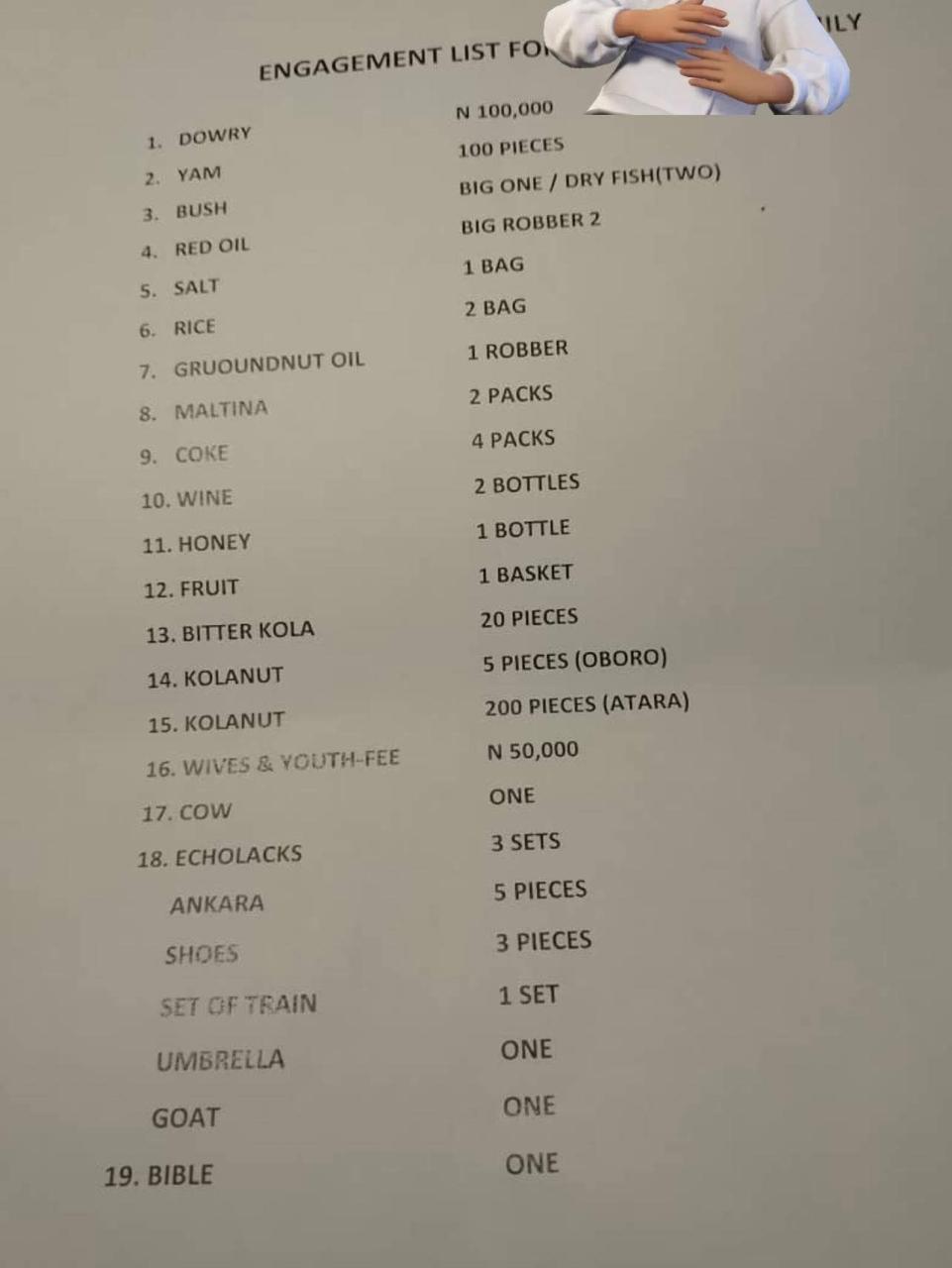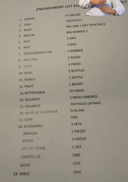 Ebira people take it easy – Kogi woman says as she shares wedding engagement list given to her uncle by his wife-to-be’s family