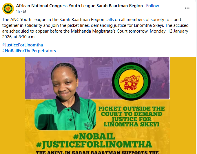 A 21-year-old man has been arrested after handing himself over to police in connection with the m8rder of a 16-year-old girl whose body was discovered in Joza, Makhanda, Eastern Cape, South Africa. Police spokesperson Lieutenant Colonel Siphokazi Mawisa, who disclosed this in a statement on Sunday, January 11, 2026, said the suspect was arrested on Friday after he reported himself at Joza SAPS. The arrest follows the k!lling of Linomtha Skeyi, whose body was found in an open field behind the Department of Social Development premises at Joza in Makhanda on Christmas Day, 25 December 2025. Police said Skeyi was reported missing on Christmas Eve, December 24, 2025. A search and rescue operation was subsequently launched, during which her body was discovered the following day. At this stage, investigators have not established a motive. The motive behind the m8rder is not clear at the moment but forms part of the ongoing investigation, said Mawisa. The suspect is expected to appear before the Makhanda Magistrates Court on Monday, January 12, 2026. Mawisa confirmed that investigations are continuing as police work to establish the full circumstances surrounding the teenagers d3ath.