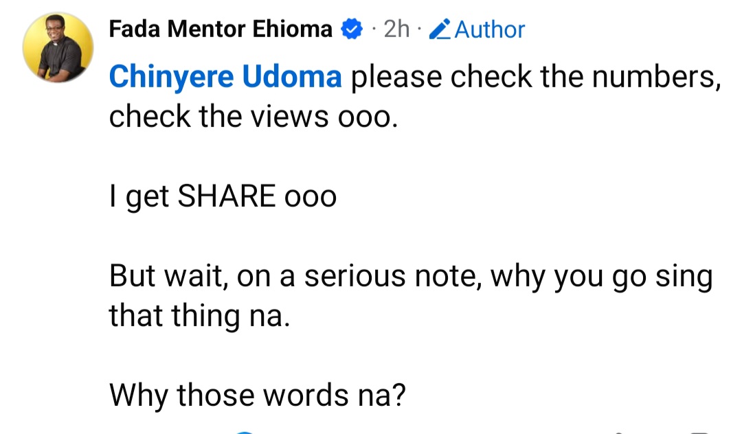 He added: “But wait, on a serious note, why you go sing that thing na. Why those words na?”