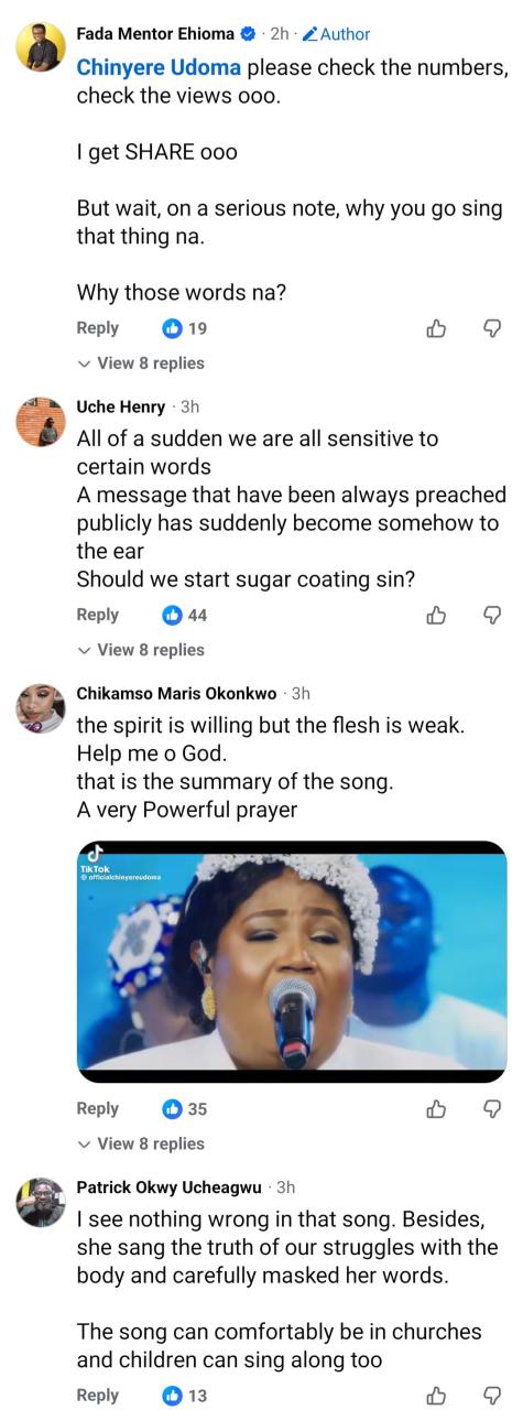 In the song in question, Udoma sang: “My flesh wants me to f*rnicate. My flesh wants me to m@s+urbate. My flesh wants me to engage in h0mosxuality. My flesh wants me to steal. But I don’t want to do what my flesh wants. Heaven is important to me. I don’t want to do what my flesh wants. God hold me.” The priests post criticising the song has sparked mixed reactions. Some pointed out that even the bible did not mince words when naming certain sins and children read those parts of the bible. So, they questioned why the priest should try to police the words used by Udoma in her song. However, others agreed that Udoma could have passed her message across without being explicit.