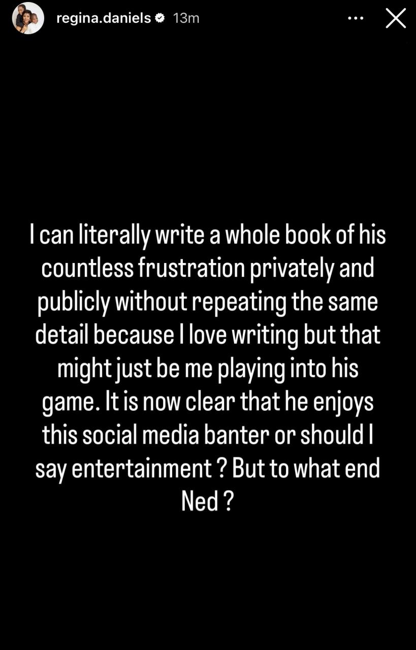 ”You have lived the best part of your life why do you want mine to revolve around chaos?”- Regina Daniels asks her estranged husband Ned Nwoko