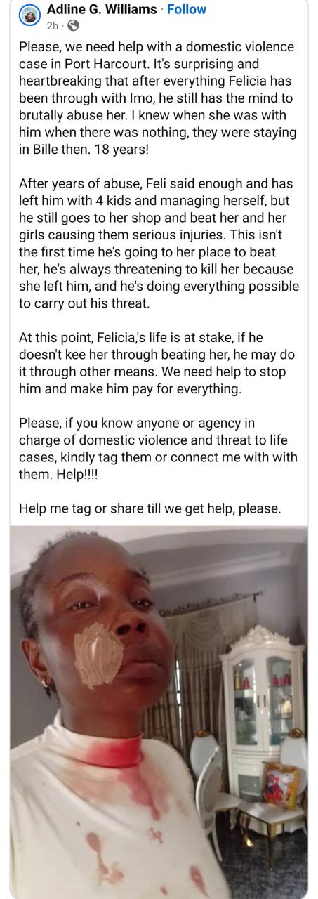 A man has been accused of going to his estranged wife’s shop to beat her up. The woman, identified simply as Felicia, is said to have separated from her husband allegedly due to domestic violence. The couple, who share 4 kids, live in Port Harcourt. Concerned citizens have claimed that the husband has vowed not to let the woman be and he still goes after her to abuse her. They have now expressed concern that he might k!ll her if care is not taken. A photo of Felicia purportedly taken after a recent assault incident has been shared online. It shows her with a bandage on her swollen face and blood on her blouse. Acquaintances have now called for help from concerned agencies to save Felicia from her allegedly abusive estranged husband. The post Man accused of storming estranged wife’s shop in Port Harcourt to be@t her up after she left him appeared first on Linda Ikeji Blog.