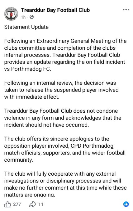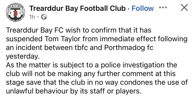 A footballer has been arrested and released by his club in Wales, UK, after a video emerged showing him allegedly elbowing an opponent in the face during a match, prompting a police investigation. The footage, captured on Saturday, January 17 appears to show Trearddur Bay player, Tom Taylor targeting a Porthmadog defender before a penalty was taken, delivering a forceful elbow to the opponents jaw. The clip has gone viral, with more than 10 million views online. Many viewers have called for Taylor to be banned and some have even demanded he be arrested following the Ardal North West League match in Wales. North Wales Police confirmed the incident is under investigation and that Taylor has been arrested.  Trearddur Bay Football Club have terminated their contract with a player following an on field incident during their game with Porthmadog FC – @NWPolice have arrested the 35 year old man on suspicion of assault & he remains in police custody whilst their enquiries are ongoing! pic.twitter.com/zTdHtSLbmu Aaran Lennox (@aaranlennox) January 18, 2026  In a statement posted on Facebook on Sunday, the force said: North Wales Police are aware of a video circulating online relating to an incident that occurred at a football match between Trearddur Bay FC and Porthmadog FC on Saturday (17 January). The police added that officers were investigating to establish the circumstances, and that as part of this investigation a 35-year-old man has been arrested on suspicion of assault. He remains in police custody at this time. The statement continued: Enquiries are ongoing and we would ask members of the public not to speculate whilst the investigation continues. Anyone with information that may assist the investigation is asked to contact police. Trearddur Bay FC acted swiftly by suspending Taylor, announcing on social media: Trearddur Bay FC wish to confirm that it has suspended Tom Taylor from immediate effect following an incident between tbfc and Porthmadog fc yesterday. The club added that, because the matter is subject to a police investigation, it would not comment further, but stressed that it in no way condones the use of unlawful behaviour by its staff or players. Following an internal review, Trearddur Bay later confirmed that Taylor had been released from the club. In an update, the club said: Following an internal review, the decision was taken to release the suspended player involved with immediate effect. The club continued: Trearddur Bay Football Club does not condone violence in any form and acknowledges that the incident should not have occurred. The club offers its sincere apologies to the opposition player involved, CPD Porthmadog, match officials, supporters, and the wider football community. The club also said it would cooperate fully with external investigations and disciplinary processes. The incident reportedly occurred in the 59th minute of the match. The player who was elbowed, identified by some reports as Danny Brookwell, had been fouled just before the incident.  The Welsh FA said it was aware of the incident and would be reviewing it, adding: Tier three matches fall under the jurisdiction of the FAW. The FAW is aware of the incident and will be reviewing it.   The post Footballer sacked by club and arrested after brutally elbowing his opponent (video) appeared first on Linda Ikeji Blog.