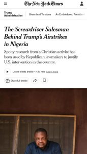 Politics Nigeria recalls that a New York Times investigation had earlier identified Emeka Umeagbalasi, a trader based in Onitsha, Anambra State, who also runs a small non-governmental organisation, as a key source of data cited by prominent US politicians to support claims that Christians were being systematically targeted in Nigeria.