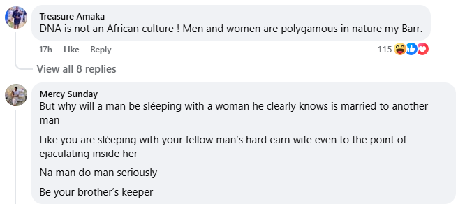 Several Nigerian women have reacted after human rights lawyer, Inibehe Effiong, shared his experience handling cases of paternity fraud.  According to Effiong, the paternity fraud caused his clients emotional distress while one of the women showed no remorse for her action.  Some of the women reacted sarcastically to the post by taking a sarcastic dig at the justification for infidelity based on the claim that men are naturally polygamous.  Others blamed the men for not looking s3xy, praying or fasting enough, yet another swipe at men who blame women for their husband’s infidelity, citing lack of attractiveness.  DNA testing is not African culture. Paternity tests are not our culture. All these are western civilization that want to destroy the family unit. A true African man is the father to all the children his wife has, one Ifeoma Ojeifo wrote.  If a man discovers that his wife has a child outside wedlock, he has to by all means PRAY for her. He should also make sure to sleep naked to seduce her so that she does not look outside. He should keep his SUKRUTUM clean and smell nice. He must also be very patient with her. Above all, he should show that he loves her by accepting the child of his wife’s side cock. These things happen in marriage. Let him forgive and forget. It is well with him, one Stephanie Nnadi wrote. One Roberta Edu wrote: Maybe the man was all over the place cheating on his wife, thinking he can eat his cake and still have it. What he didn’t know was that, he actually married his type. Why is he in court tori olorun, it is only paternity issues, he can pray about it, he should look sexy for his wife so that she wouldn’t go outside again. Small paternity fraud is why he is crying, all children are from above. Maybe the man is not meeting up in looking good, smelling nice, always looking neat, shave his hairs and keep fit, Some of this men once they marry and stay 1 year they will change, eat like glutton, some will wake in the midnight to eat something, you’ll see a man that have never been pregnant before looking like a 6 months old pregnant woman, Let this men fast and pray for there wive’s, consult the wife mother let her advise the daughter, sit down and ask the wife how his getting it wrong so he will adjust and make things right , women like seeing there men handsome and good looking Peace and light Besides in our culture any child born by a married woman belongs to the husband abi una forget, another wrote.     The post DNA testing is not African culture – Nigerian women react after human rights lawyer, Inibehe Effiong shared his experience handling paternity fraud cases appeared first on Linda Ikeji Blog.