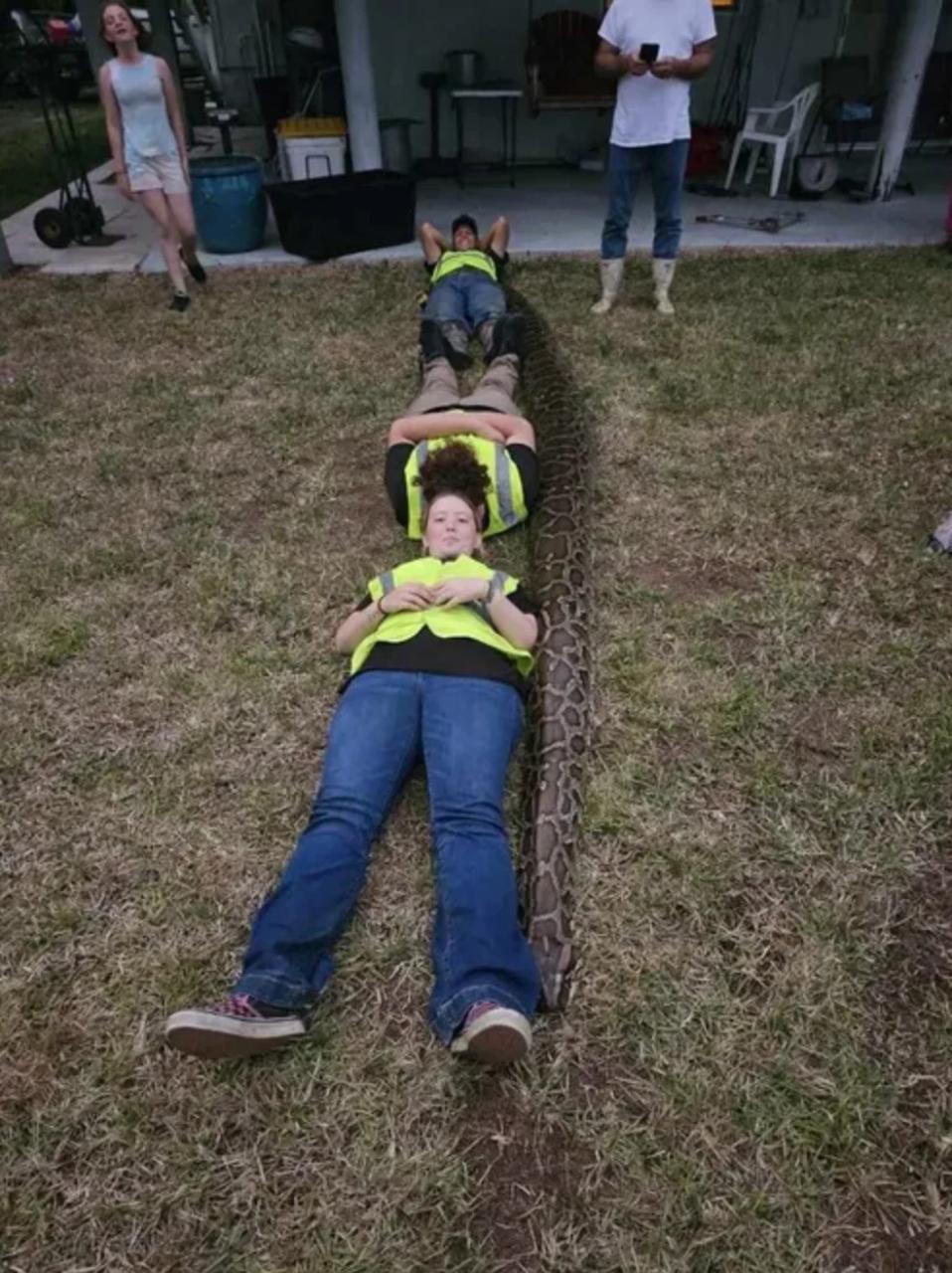 A professional python hunter in Florida needed assistance from family members to uncoil a giant Burmese python from his body He also managed with their help to ultimately subdue the python, which is the second-heaviest python ever caught in Florida. Carl Jackson, who is a contracted python hunter with the Florida Fish and Wildlife Conservation Commission, was traveling back on Turner River Road in Big Cypress National Park in the afternoon on Jan. 13 when he noticed Burmese python tracks across the road over his truck tracks. They appeared to be tracks from a smaller snake, perhaps an 8-footer, tops. I go in [to the bushes] and walk around and I see a head, Jackson told the Naples Daily News this week. He immediately recognized that this was not a small snake. Jackson began wrestling with the huge python, which dragged him over a red and black ant hill. It was like riding a slow horse, Jackson, 43, told Naples Daily News. It was insane. Jackson relied upon his team to uncoil the snake from around his body several times.  His team included his wife, Tasha, and adopted kids, Ryker Young, 20, and Jazzlyn Bateman, 16, all of whom just the day before became certified assistants in the FWCs Python Action Team, Removing Invasive Constrictors program. The python wound up being the second-heaviest python ever caught in Florida at 202 pounds. The record is 215 pounds caught in 2022.  Jacksons python was a 16-foot, 10-inch female, which had been carrying 200 eggs.The post Large python drags hunter 15 feet over ant hill until family intervenes appeared first on Linda Ikeji Blog.