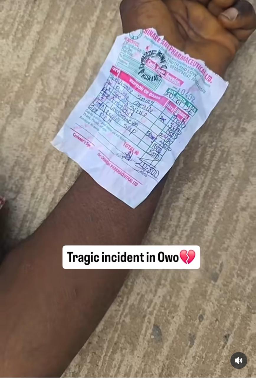 A man slumped and did while crossing the road in Ondo State. The incident is said to have occurred today, Jan. 29, in Owo, Ondo state. According to eyewitnesses, the man, who had with him a prescription for medications, appears to have been trying to cross to the pharmacy on the other side of the road, when he slumped. His phone and the prescription were shown at the scene as passersby tried to find clues to locate his loved ones. Photos and video of the man has been shared online with the hopes of reaching any one who knows him. See below..