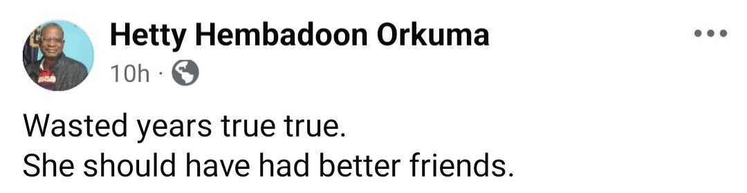 A woman has been told that she is an “enemy”, not a friend after she made a post on Facebook to announce the dath if someone she calls her friend. Orafu Precious wrote: “Lost a friend today in a fibroid operation . “What a life ! No marriage, no husband ,no child, no achievement. “Just a wasted years.” Facebook users have now slammed Precious for her post. See below.