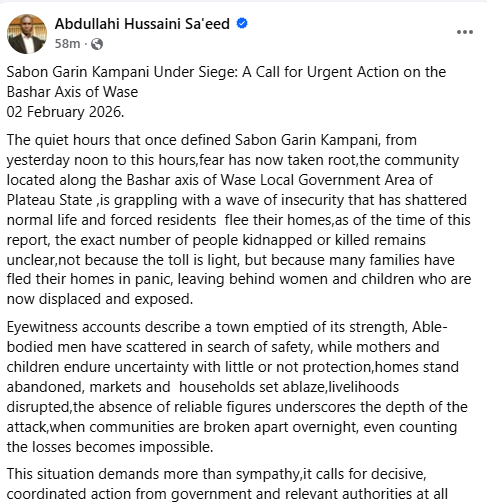 At least five residents and a soldier were k!lled in an attack by suspected bandits in Zurak community, Bashar district in Wase Local Government Area of Plateau State on Monday, February 2, 2026. Residents said three soldiers are currently missing following a gun battle with the attackers. The soldiers were reportedly deployed to provide security in the area amid persistent banditry and kidnapping. According to Daily Trust, the assailants had earlier burnt down several houses in Sabon Gari community, also in Bashar district, before proceeding to Zurak. Shapii Sambo, a youth leader in Wase, confirmed the two attacks to Daily Trust on Tuesday, adding that the body of the slain soldier was moved to Jos on Tuesday morning. Jibrin Isa, a resident of Zak community, also confirmed the incident, saying the bandits stormed the two communities in large numbers, making it difficult for the security personnel stationed in the area to repel them. The incident happened around 3pm, and the assailants first attacked the military checkpoint in Sabon Gari before moving to the commercial area of the community, where they looted almost all the shops and carted away food items and other valuables, he said. Explaining further, Jibrin said, After attacking Sabon Gari, the bandits later moved to Zurak, where they also attacked the military checkpoint. During the attack in Zurak, they killed five residents and one soldier. Three soldiers are still missing.” Jibrin described the attack as devastating, revealing that Zurak community has been deserted, as residents have fled to neighbouring villages for fear of further attacks. Communities in Wase Local Government Area have suffered years of banditry and kidnapping, resulting in several d3aths. On December 21, 2025, about 28 travellers from Zak community were abducted while travelling to attend Maulud in Sabon Layi community, Bashar district.