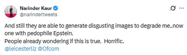 British TV personality,  Narinder Kaur, has been targeted by trolls who edited an image to give the impression she had ties with late financier Jeffrey Epstein. A photo of the 53-year-old, best known for her appearances on Jeremy Vine and Good Morning Britain, was digitally superimposed onto an image of the paedophile and circulated on X by an anonymous account. The fake picture appears to show Epstein dressed in a black polo shirt with his arm around the neck of Ms Kaur as she pouts into the camera. But in reality, the photograph shows the sx offender hugging Belarusian woman Karyna Shuliak, thought to be Epstein’s last known girlfriend.The image appears to have been manipulated using artificial intelligence (AI) in order to give the impression that Ms Kaur knew Epstein. She told the Daily Mail: ‘I have never met, or had any dealings with Jeffrey Epstein. The fact I even have to say that out loud shows how dangerous and surreal this kind of AI abuse has become. ‘Its exhausting having to constantly defend yourself against things that never happened. There is a real emotional toll to waking up and seeing your face placed into vile, fabricated scenarios.’ Ms Kaur says she has been targeted because of the colour of her skin and for being outspoken on social media.‘Im being targeted by trolls who know exactly what theyre doing, theyre trying to humiliate me, discredit me and attach my name to something so grotesque that people stop and wonder if it could be true,’ she added. ‘This is the new form of online abuse. You dont need a real photo or a real event anymore. AI can invent it for you and within minutes people are questioning your reality. ‘I think Im targeted because I speak out. Im a woman of colour, Im opinionated and I dont stay quiet. That combination seems to make me a magnet for this kind of hate.’ It was also reported that a report on the original post been made to a police force in England, which has now been passed to the Metropolitan Police.The post TV presenter calls in the police after trolls edit her into a picture with Jeffrey Epstein appeared first on Linda Ikeji Blog.