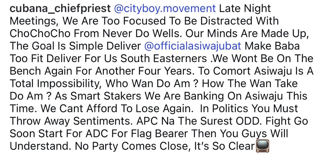 As the 2027 general election draws nearer, socialite, Pascal Okechukwu aka Cubana Chiefpriest, says that removing President Tinubu from office will be a daunting task.  In a post shared on his IG page, Chiefpriest shared a video of Igbo businessmen donating buses to the South East arm of President Tinubus re-election support group populatrly known as Cityboys. In his post, Chiefpriest stated that himself and others are focused on delivering President Tinubu’s re-election bid so he can deliver some dividends to the South East. He further stated that removing Tinubu from office is totally impossible and wonders who will be able to unseat Tinubu. He further stated that the ADC which the likes of Peter Obi are members of will soon start its in fighting for who will be the party’s flagbearer for the 2027 presidential election.  His post [email protected] Late Night Meetings, We Are Too Focused To Be Distracted With ChoChoCho From Never Do Wells. Our Minds Are Made Up, The Goal Is Simple Deliver @officialasiwajubat Make Baba Too Fit Deliver For Us South Easterners .We Wont Be On The Bench Again For Another Four Years. To Comort Asiwaju Is A Total Impossibility, Who Wan Do Am ? How The Wan Take Do Am ? As Smart Stakers We Are Banking On Asiwaju This Time. We Cant Afford To Lose Again. In Politics You Must Throw Away Sentiments. APC Na The Surest ODD. Fight Go Soon Start For ADC For Flag Bearer Then You Guys Will Understand. No Party Comes Close, Its So Clear #PoliticsNaWater” Watch the video he shared below     View this post on Instagram           A post shared by Lindaikejiblog (@lindaikejiblogofficial) The post 2027: Removing Tinubu from office is impossible. Who will do it and how will they do it?- socialite ,Cubana Chiefpriest, asks as he shares video of Igbo businessmen donating buses to President Tinubus re-election support group appeared first on Linda Ikeji Blog.