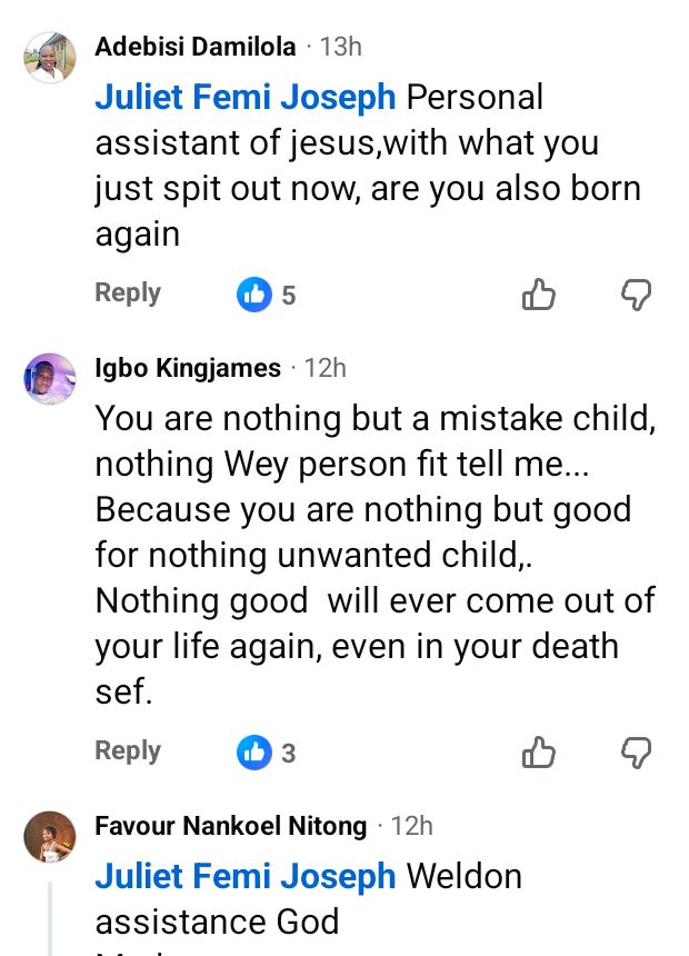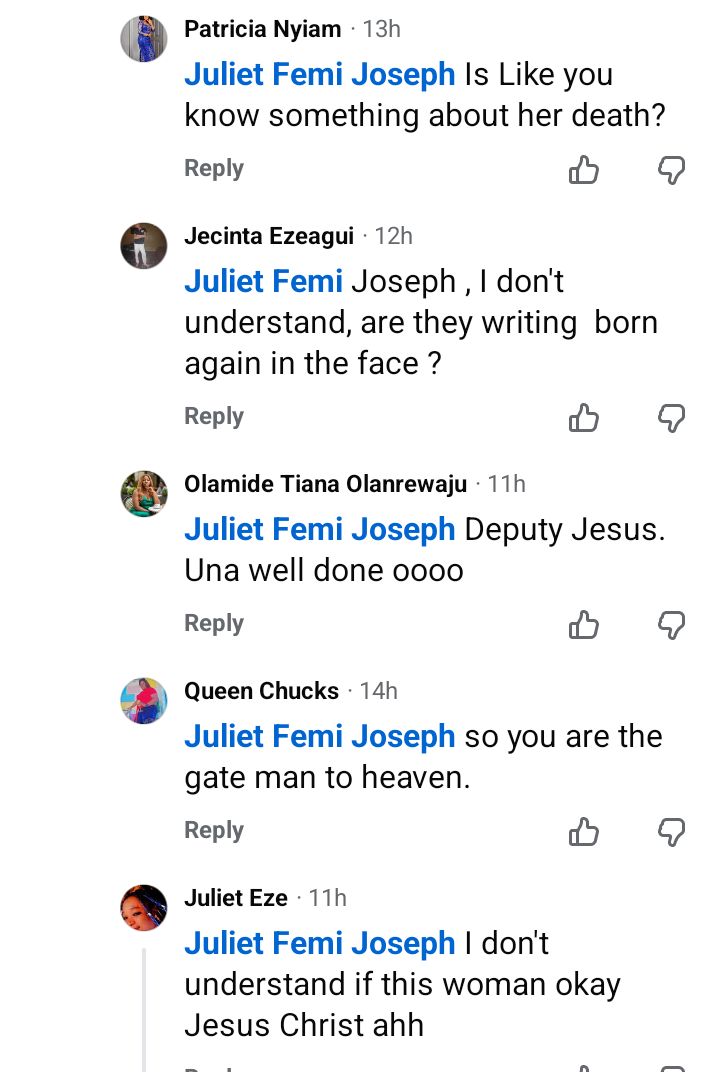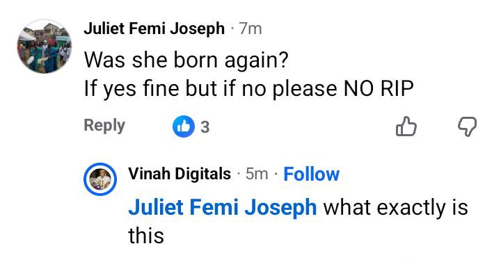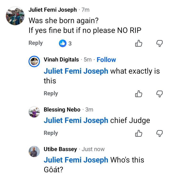 A Nigerian lady, Juliet Femi Joseph, who calls herself God’s Vessel has been slammed on Facebook after she said that a businesswoman, Blessing, who reportedly d!ed in her sleep won’t rest in peace if she wasn’t born again. A friend of the deceased, Okar-Emperor, had announced her d3ath in a Facebook post on Wednesday, February 11, 2026. According to Okar, Blessing had complained of exhaustion and weakness a few days before her d3ath.  “Ohh, Blessing, what happened, we were together 4days ago, you weren’t s!ck, the shoe you sold to me is still in its pack. That you took a nap and couldn’t wake up again is worrisome, unbelievable and unbearable ahhh, uhmm… Jesus, I’m p@ined and lost, what happened??,” she wrote. Commenting on the post, God’s Vessel wrote: Was she born again? If yes fine but if no, NO RIP” The post Nigerian woman slammed for saying that a lady who died in her sleep won’t “rest in peace if she wasn’t born again” appeared first on Linda Ikeji Blog.
