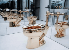 A gold toilet, that was made by the same controversial artist who duct-taped a banana to a wall, sold for a staggering $12.1 million at a Sothebys auction