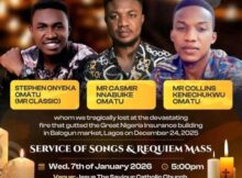 A family has announced the service of songs for three brothers who did when they were trapped in the fire the gutted the Great Nigeria Insurance House in