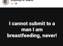 A Nigerian woman, Onyinoyi Mario, has vowed never to submit to a man she is br3astfeeding. I cannot submit to a man I am breastfeeding, never! she wrote. The post