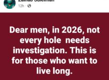 A Nigerian medical doctor, Zainab Suleiman Buhari, has advised men who want to live a long and healthy life to avoid investigating every hole. Dear men, in 2026, not